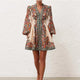 Mireille blue cut-out belte...Juliette floral print pleated mini dress