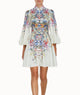 Floral Round Neck Lace Up Short Sleeve Midi Dress