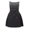 Elegant Off-Shoulder Ruched...Black Strapless Rhinestone Embellished A-Line Mini Dress