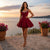 Burgundy Velvet Rhinestone Trim Corset Dress