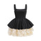 Romantic Cream Ruffled Lace...Elegant Black Sleeveless Dress with Cream Ruffled Hem